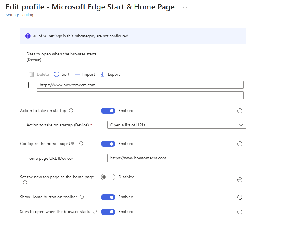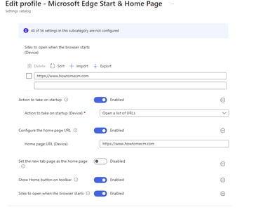 Como Configurar a Página de Inicialização e a Página Inicial do Microsoft Edge via Intune